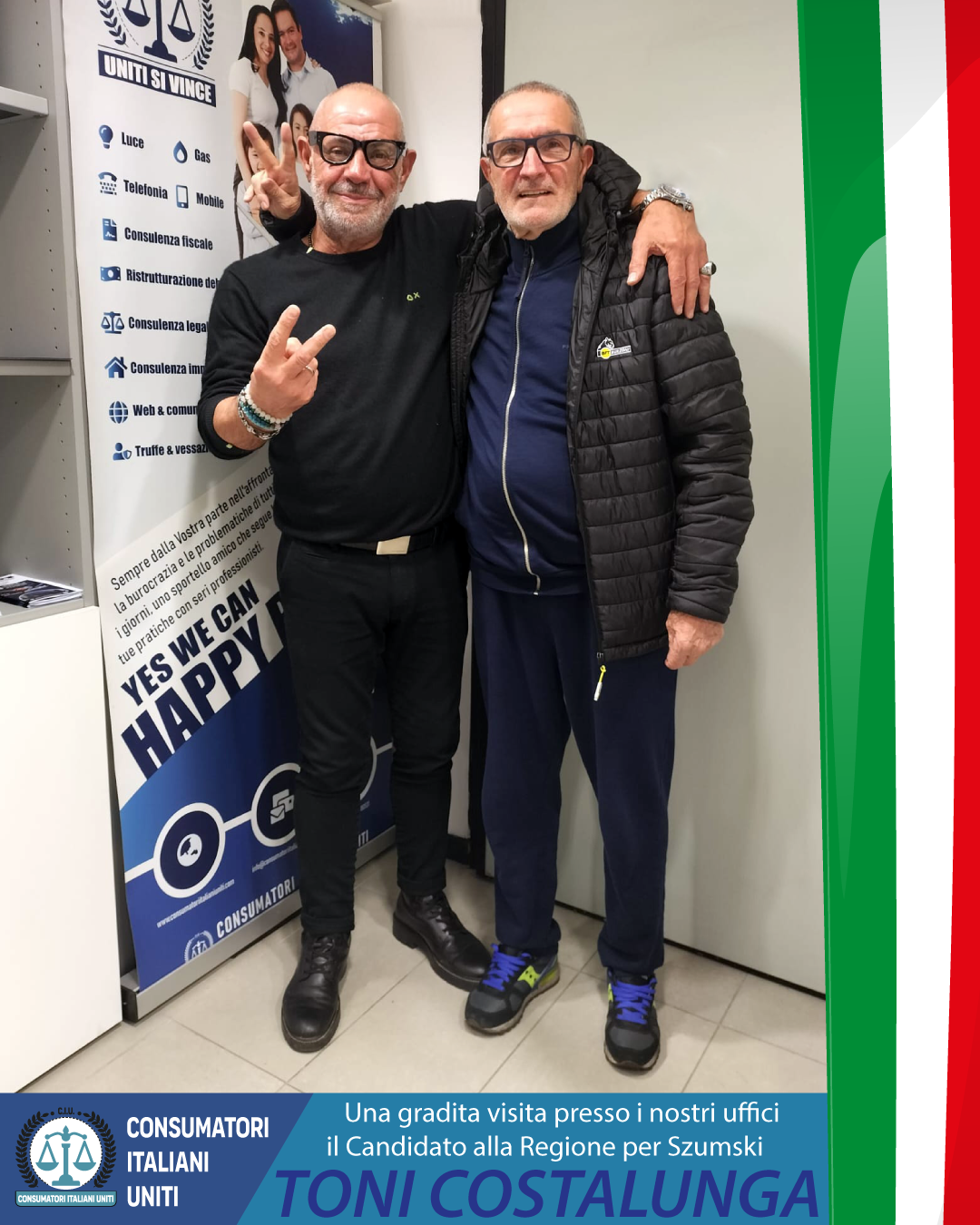 Lunedì 3 Novembre presso i nostri uffici della Consumatori Italiani Uniti abbiamo ricevuto la visita del Candidato alla Regione di Szumski TONI COSTALUNGA.